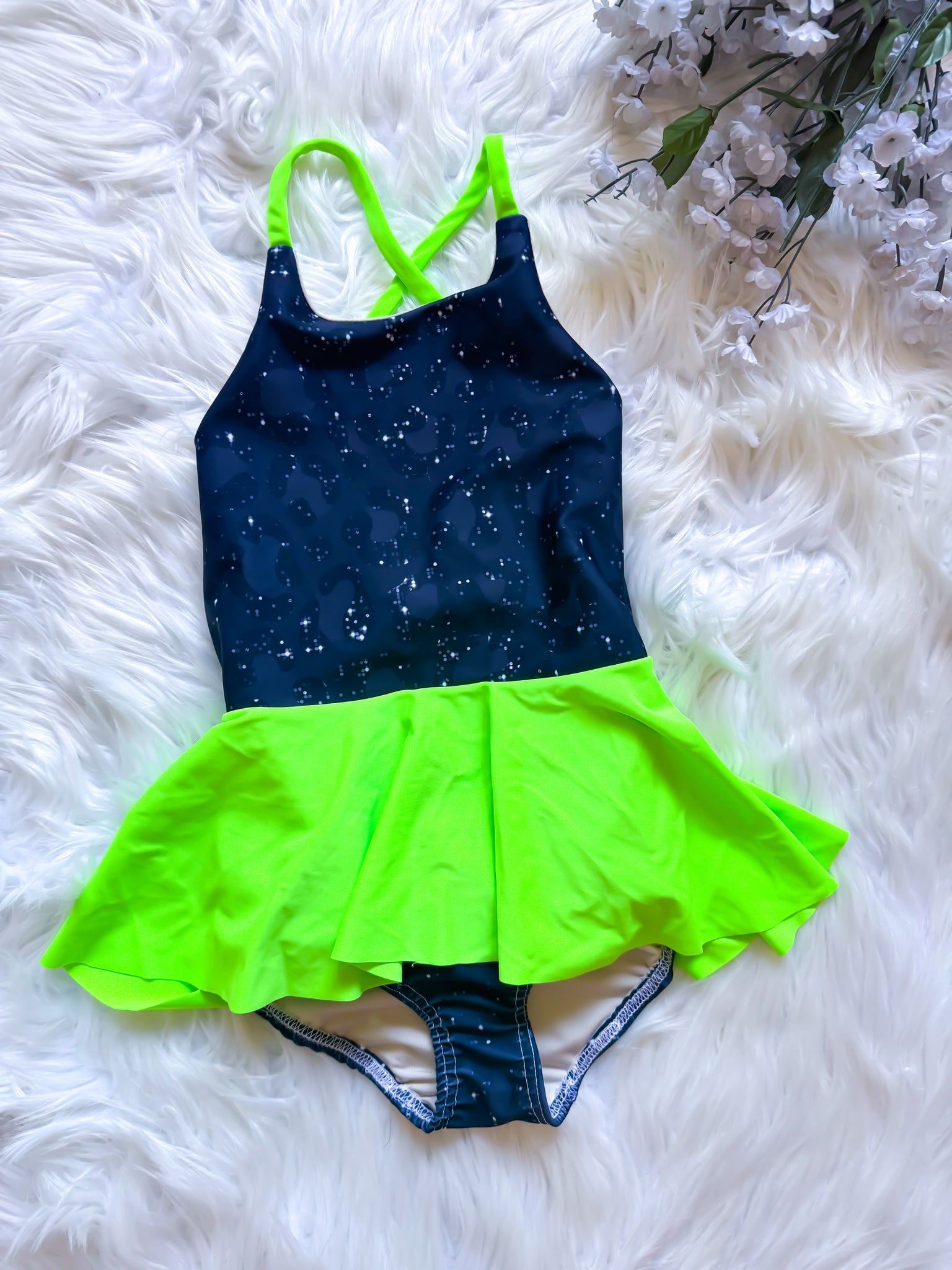 RTS 6 Black and Neon green leopard swimsuit